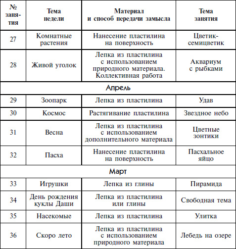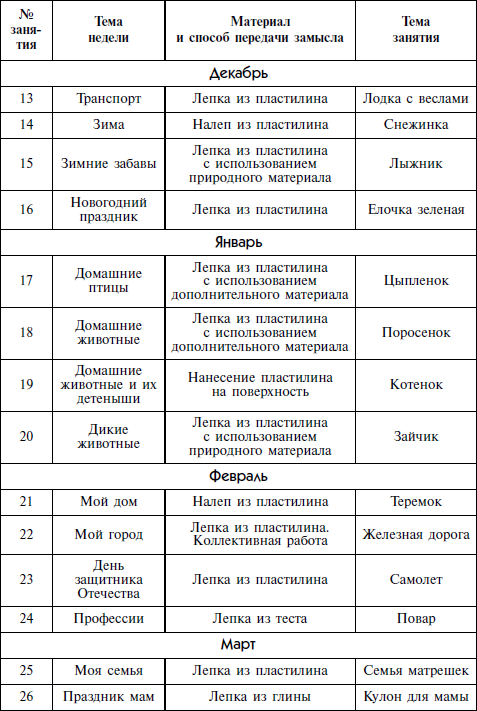 Годовое тематическое планирование занятий по лепке