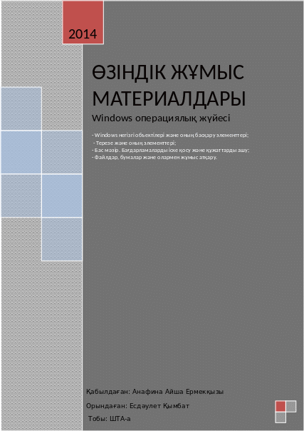 Тақырыбы: «Windows операциялық жүйесі. Негізгі объектілер