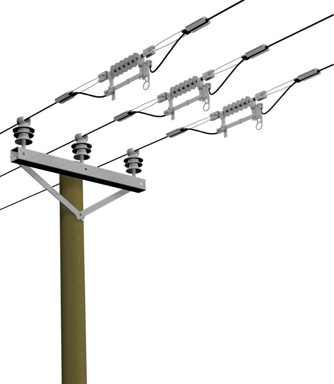 Для создания видимого разрыва на ВЛЗ 6-10кВ возможно применение линейного разъединителя типа SZ24. Он представляет собой комплект из трех однофазных разъединителей. Каждый однофазный разъединитель состоит из натяжного полимерного изолятора и смонтированных на нем подвижного и неподвижного контактов.