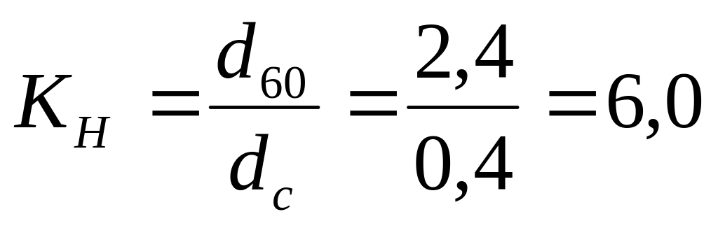Отношение диаметра частиц d60, соответствующего 60% их содержания в горной породе, к действующему диаметру dl называется коэффициентом ее неоднородности Кн.