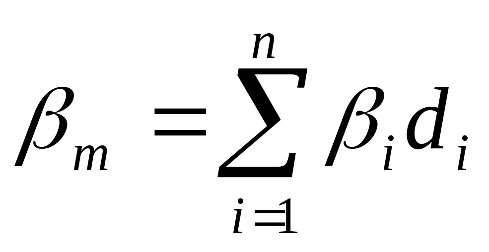 де n — кількість фінансових активів у портфелі; βi — значення β і-го активу; di — питома вага і-го активу в портфелі.