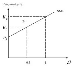 Рівняння оцінки активів САРМ (15) відображене на рис.8.3 лінією, яку