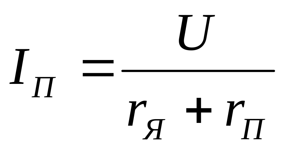 Обычно сопротивление rП выбирается так, чтобы пусковой ток был в 1.5 – 2.5 раза выше номинального, что обеспечивает большое значение пускового момента. Пусковой реостат не рассчитан на длительную работу в якорной цепи, поэтому после окончания разгона он выводится из работы. В процессе разгона в обмотке якоря появляется противо-ЭДС и ток в какой либо момент времени определяется из выражения: