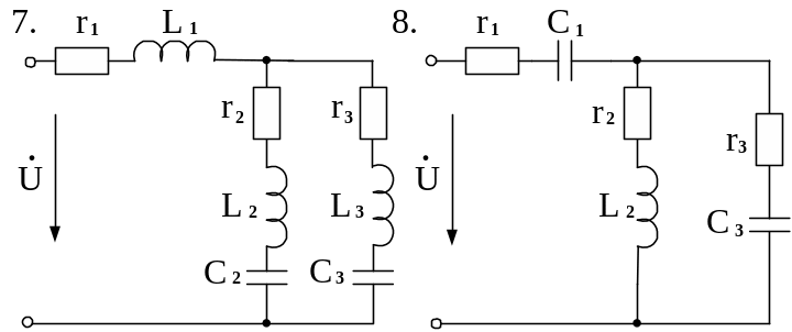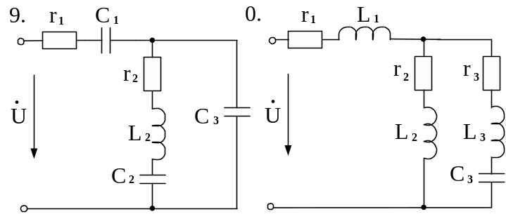 Значение напряжения источника U и параметры резисторов, индуктивностей и емкостей для каждого варианта приведены в табл.2.