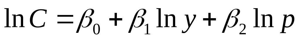 Это уравнение описывает (в среднем) поведение потребителя по отношению к покупке данного пищевого продукта в зависимости от относительного уровня цен на продукты и реального душевого дохода.