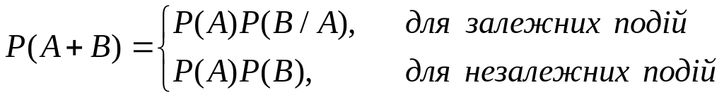 Ймовірність появи принаймні однієї події з двох незалежних подій:
