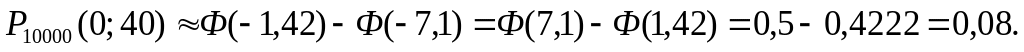 Серед виготовлених деталей в середньому 0,5% браку. Яка ймовірність, що в партії з 10000 деталей – 40 бракованих?