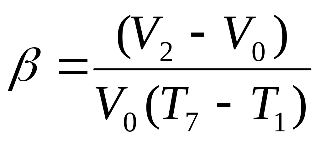 Средний коэффициент объемного расширения в процессе проведения эксперимента равен: