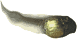 9а. Брудно-сіро-чорне тіло, завширшки 4-5 мм з сірою плямою на горлі (ст. 43) Личинка очеретяної ропухи (Bufo calamita) |
