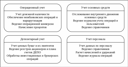 Рис. 7.5. Функции модулей автоматизации учетных операций
