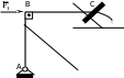 5. Сынықты АВС сырығы бір ұшымен шарнир арқылы бекітілген, ал екінші ұшы горизонталмен a = 45° бұрышын құратын тегіс бетке тіреледі. Сырыққа F = 10н күші әсер етеді деп, А шарнирінің реакциясын анықтаңыз.