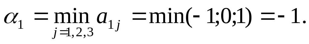 Решение. Для первой строки платежной матрицы, т. е. при выборе игроком стратегии A1, получаем число