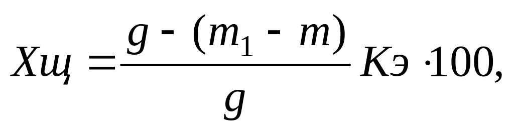 где m1 — масса фильтра с остатком древесины после щелочной обработки, г; m — масса пустого фильтра, г; g — масса абсо- лютно сухой навески древесины, г.