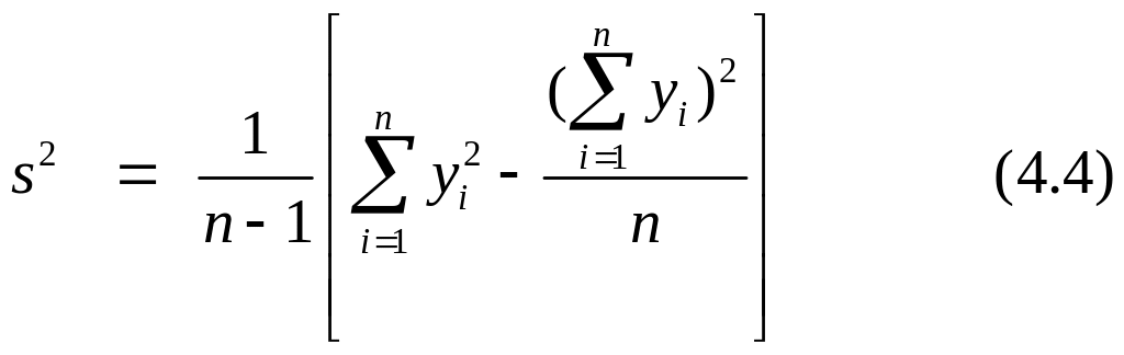 Вычисления по формулам (4.3) и (4.4) равноценны, но последняя обладает меньшей погрешностью округления, посколь- ку среднее арифметическое не вычисляется.