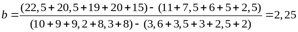 Рис. 4.6. Пример построении прямой дли нахожде- ния углового коэффициента методом группировки