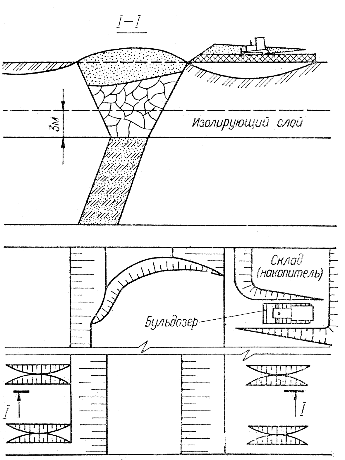 Рис. 5.2.4. Схема засыпки провалов смесью наносов и привозных скальных пород |