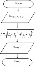 r:=sqrt(sqr(x2-x1)+sqr(y2-y1)); // вычисление