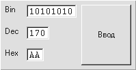 Для ввода числового значения в выбранный регистр, надо щелкнуть по нему левой клавишей мыши. Открывается окно, в котором можно задать любое числовое значение в двоичной, десятичной или шестнадцатеричной системе счисления (рис.6), после нажатия кнопки «ввод» число записывается в регистр.