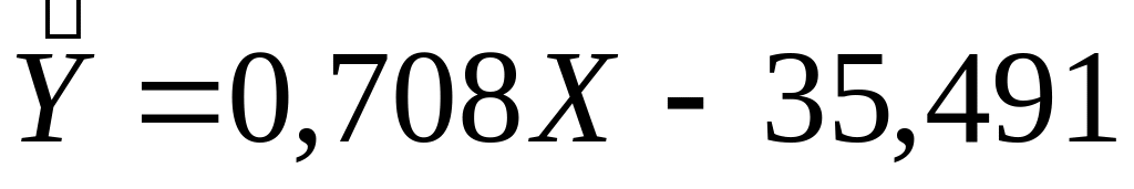 Находим, что b1 = 0,708 и b0 = –35,491. Таким образом, уравнение для оценивания Y по X выглядит так: 0,708Х + (–35,491) = 0,708X – 35,491. Прямая, соответствующая этой формуле, изображена на рис. 8.1.