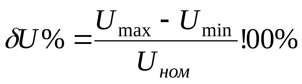 Отклонение напряжения - разность между фактическим значением напряжения и его номинальным значением для сети, возникающая при сравнительно медленном изменении режима работы, когда скорость изменения напряжения меньше 1% в секунду.