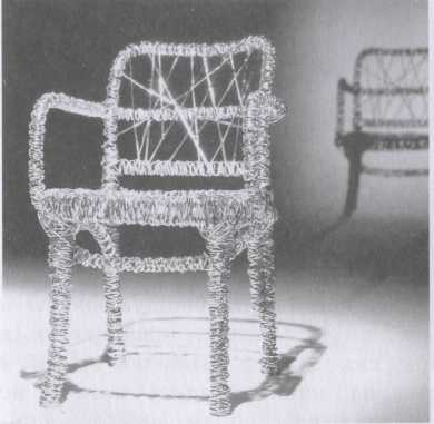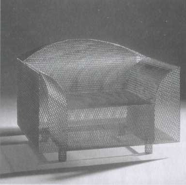 "Как высока луна" - кресло под таким поэтическим названием сделано из металлической сетки. Сетку Курамата использовал ее не только в мебели, но и при оформлении интерьеров: делая из сетки колонны, перегородки навесы. Никелированный металл, из которого выполнено кресло, мягко мерцает, напоминая о бледном свете луны. При этом крупные вполне традиционные пропорции,эластичность сетки гарантируют комфортность мебели. Кресло - этот тяжеловесный символ буржуазной жизни - дизайнер переводит в эмоциональный образ постмодернистской индустриальной эстетики, "вынося" его из закрытой гостиной во внешний мир.