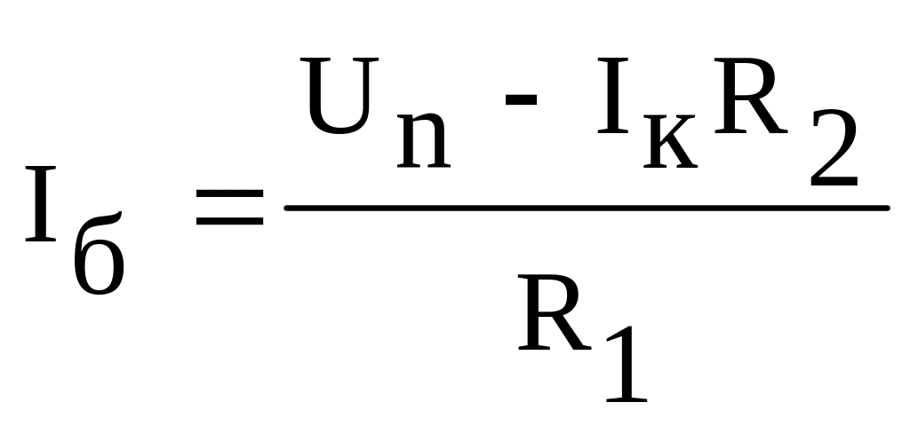 Так как резистор R1, задающий базовый ток, подключен к коллектору транзистора, то ток базы будет уменьшаться, что и приведет к стабилизации тока коллектора. Ток базы в этой схеме можно определить из соотношения
