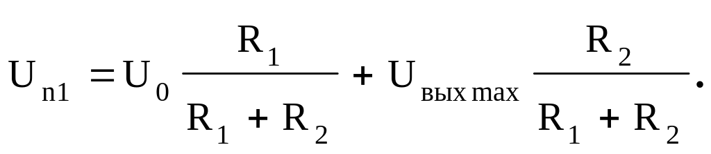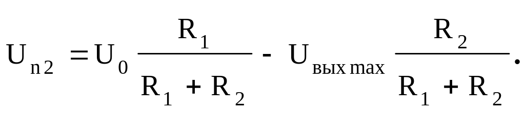 При входном отрицательном напряжении (на инвертирующем входе) меньше порогового выходное напряжение будет равно +Uвых max. Напряжение на прямом входе ОУ определяется воздействием двух напряжений – эталонного (Uo) и Uвых. Величину этого напряжения можно найти из соотношения: