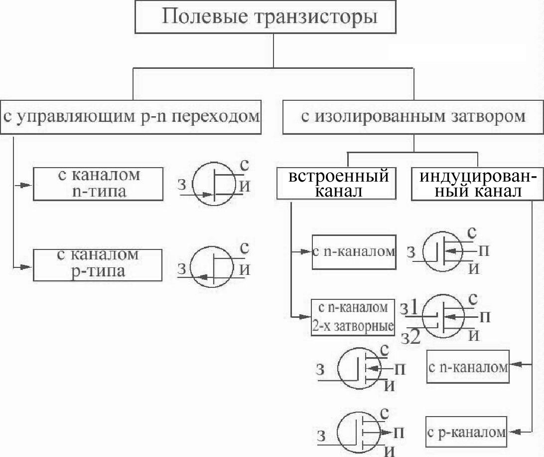Условные графические обозначения полевых транзисторов и их классификация приведены на рисунке 6.4.