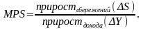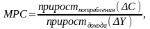 Отношение изменения потребления к изменению дохода называется предельной склонностью к потреблению (МРС), а отношение изменения сбережений к изменению дохода называется предельной склонностью к сбережению (MPS):