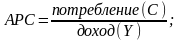Доля располагаемого дохода, направляемая на потребление, называется средней склонностью к потреблению (АРС), а доля располагаемого дохода, направляемая на сбережение, называется средней склонностью к сбережению (APS):