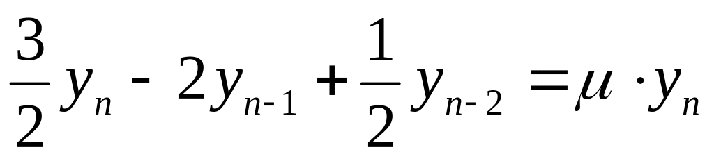 Різницеве рівняння (8.45) має другий порядок точності, а (8.46) - третій. Щоб знайти область стійкості методу, варто записати аналогічні рівняння для диференціального рівняння (8.46). Наприклад, (8.45) набере вигляду