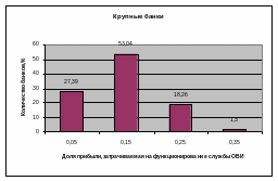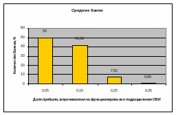Из анализа гистограмм (рис.4,а-д) можно сделать весьма поучительный вывод о том, что большинство исследованных финансовых организаций следуют единственной логике – выделение некоторого минимума средств на обеспечение ИБ (рис.4,в-д). Средние банки занимают промежуточную позицию между минимальными и некоторыми средними затратами (рис.4,б). Исключение из этого общего правила составляют крупные банки, руководство которых склонно к некоторому среднему уровню затрат на обеспечение своей ИБ (рис.4,а).