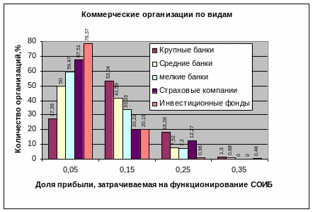 Рис.4. Гистограмма затрат на ИБ для отдельных видов финансовых организаций