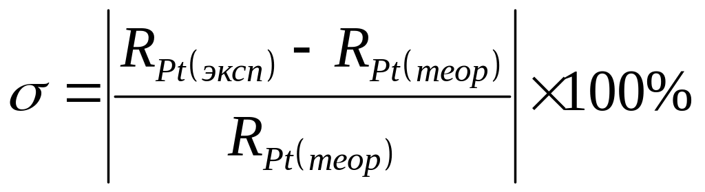 Рассчитать относительное отклонение экспериментальных значений RPt от теоретических по формуле (1.19):
