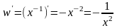 Производная w = x -1 находится по формуле 1) из (1):