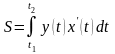 где t1 и t2 определяются из уравнений а = х(t1), b = х(t2) [ y(t)≥0 при t1<t<t2].
