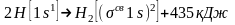 соответствии с принципом Паули, электроны, находящиеся на одной МО, должны обладать противоположно направленными спинами. Используя символы, выражающие размещение электронов на атомных и молекулярных орбиталях, образование молекулы водорода можно представить схемой: