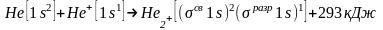 Теперь становится понятной возможность существования устойчивого молекулярного иона . При его образовании единственный электрон переходит с атомной орбитали 1s на связывающую орбиталь , что сопровождается выделением энергии (рис. 47) и может быть выражено схемой: