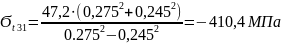 Еквівалентне напруження визначаємо за енергетичною теорією міцності (4 теорія) для тривісного напруженного стану
