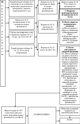 Аналитический учет общехозяйственных расходов ведется в ведомости № 15 или машинограммах по предприятию в целом в разрезе статей утвержденной номенклатуры. Итоги ведомости № 15 (машинограммы) в конце месяца переносятся в журнал-ордер № 10 или 10/1. Схема обработки информации по учету затрат на производство представлена ниже (схема 3.1).
