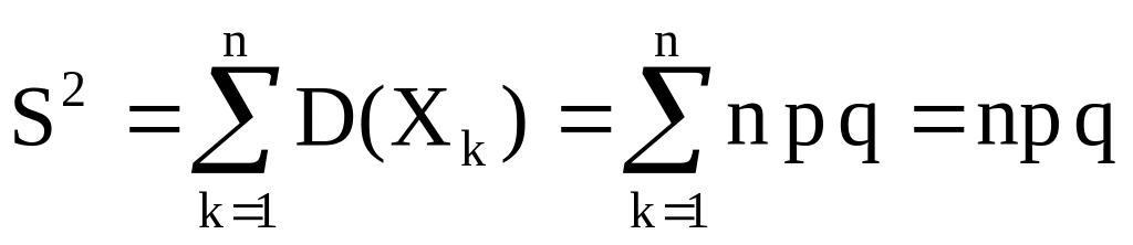 Доказательство. Проверим, что для независимых, одинаково распределенных СВ Хk (k = 1,…), принимающих значение 0 или 1, причем Р(Х=1) = р, Р(Х = 0) = 1 – р = q, выполняется условие Ляпунова.