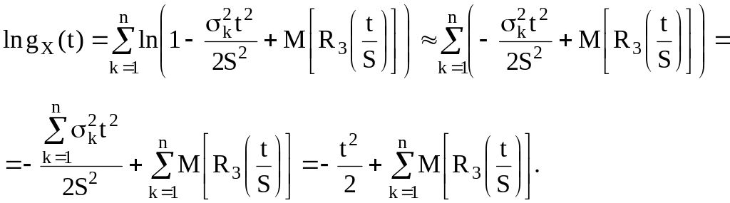 Доказательство. Найдем характеристические функции случайных величин: [X1 – M(X1)], [X2 – M(X2)], …, [Xn – M(Xn)].