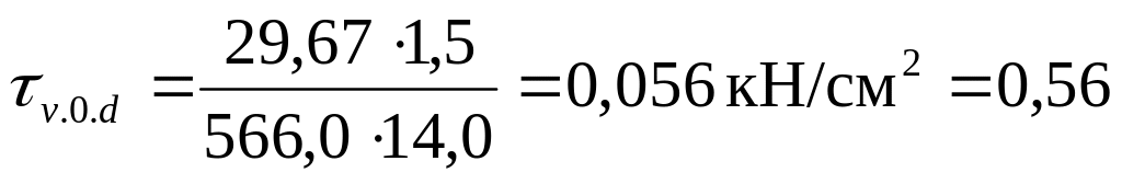 Проверим сечение колонны на действие скалывающих напряжений при изгибе по условию (5.4):
