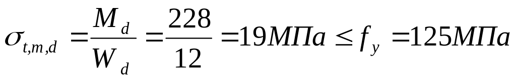 Проверка растягивающих и сжимающих напряжений в обшивке при изгибе: