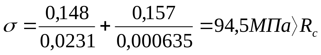 Проверка напряжений в сечении при максимальной продольной силе N=148 кН и изгибающем моменте M=3,375 кН∙м.