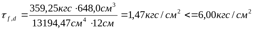 где fpv,0,d=6 кгс/см2 – расчётное сопротивление скалыванию фанеры вдоль волокон наружных слоёв[1, табл.6.11] ,