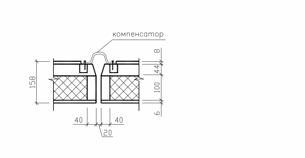 Компенсатор, работая в пределах упругости материала, должен допускать перемещения опорных частей панели, связанные с поворотом торцевых кромок панелей и раскрытием швов.
