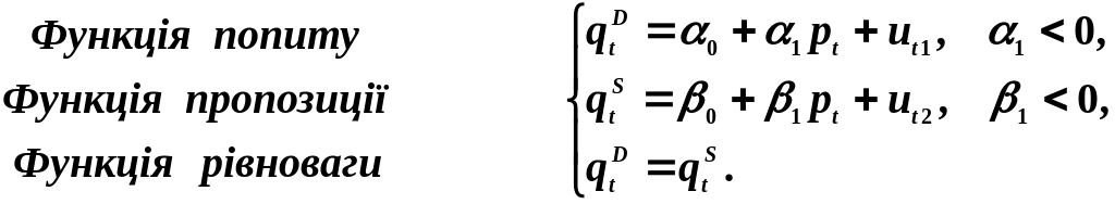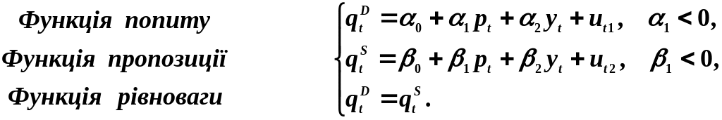 Одна з найпростіших систем одночасних рівнянь, що використовується при моделюванні попиту та пропозиції в ринковій економіці, має вигляд: