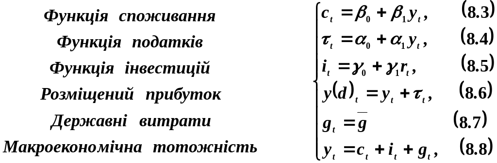 Однією з можливих нестохастичних форм моделі IS (рівноваги на ринку товарів) є така модель: