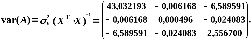6. Визначимо матрицю коваріацій оцінок параметрів моделі (коваріаційну матрицю):